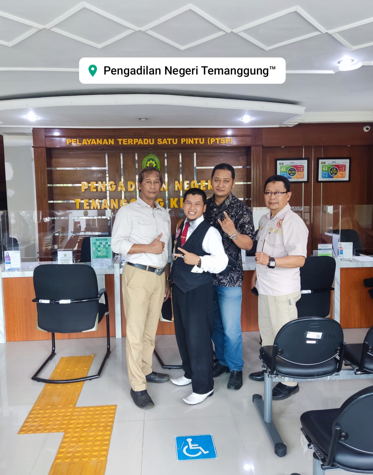 sekitar pukul 13.00 team diterima oleh Bpk Agus Dwi sebagai Panmud pada Pengadilan Negeri Temanggung, dalam acara penyerahan Piagam hadir mewakili penyerahan piagam Apresiasi dari team Lawyer PBH LIDIK KRIMSUS RI yang diketuai NURJANAH, SH.MH didampingi DR (CAND) HERMAWAN NAULAH, ST.SH.MH.C.Me.; WENDELINUS WHENDY MIEKOLAS,SH. dan AMATUS CAHYANA WAHYU WIBOWO, SH. kepada 3 hakim dan satu Panitera Pengganti yaitu : Novi Wijayanti, SH.MH/ Hakim; Cahya Imawati,SH.M.Hum./ Hakim, Sularko,SH./ Hakim dan Th.R. Hary Tjahawan,SH./PP. dalam mengadili dan memutus perkara No. 4/Pid.Sus.Anak/2023/PN.Tmg pada tanggal 07 Pebruari 2023 .