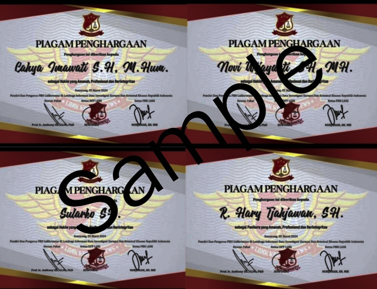 Bahwa dengan piagam tersebut sebagai bentuk apresiasi dari Pusat Bantuan Hukum “ Lidik Krimsus RI “ kepada Hakim yang telah memutus dengan adil dan bijaksana atas perkara tersebut. dengan apresiasi yang diberikan membuat team lawyer percaya masih ada hakim yang amanah dan adil dalam memutus perkara yang melibatkan peran Allaah tentunya, sehingga tidak saja melegakan klien kami juga ada rasa keadilan yang klien rasakan.