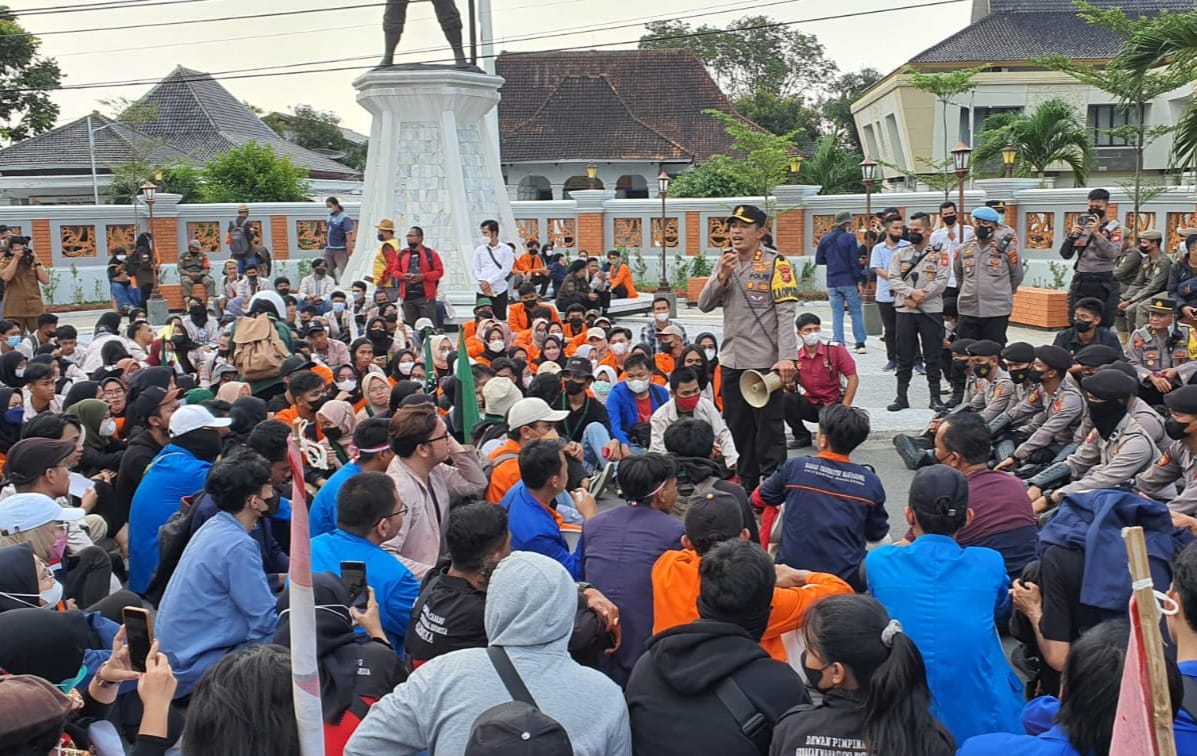 Terciptanya Kondusifitas, Kapolres Majalengka Berikan Pesan Positif Pada Mahasiswa Saat Unjuk Rasa