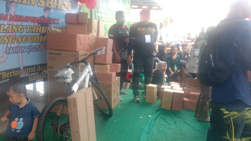 Masyarakat sangat antusias dengan adanya acara tersebut, terlihat lebih 200 orang ikut dalam acara jalan sehat didesa gunung sugih besar