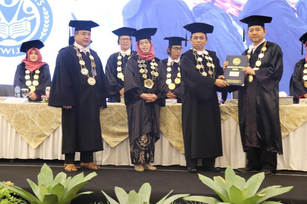 Sebanyak 436 Mahasiswa S1 dan S2 Universitas IPWIJA resmi menyandang gelar Sarjana Manajemen dan Magister Manajemen usai diwisuda melalui Sidang Senat Terbuka pada Selasa, (3/10/2023) di Krakatau Ballroom Green Teras TMII, Jakarta Timur. Menariknya, prosesi wisuda kali ini menjadi spesial ketika Sidang Senat Terbuka Universitas IPWIJA yang dipimpin Rektor Ir. Besar Agung Martono, MM, DBA mengukuhkan Prof. Dr. Slamet Ahmadi, MM sebagai guru besar dari kalangan internal untuk pertama kalinya dalam sejarah berdirinya Universitas IPWIJA.