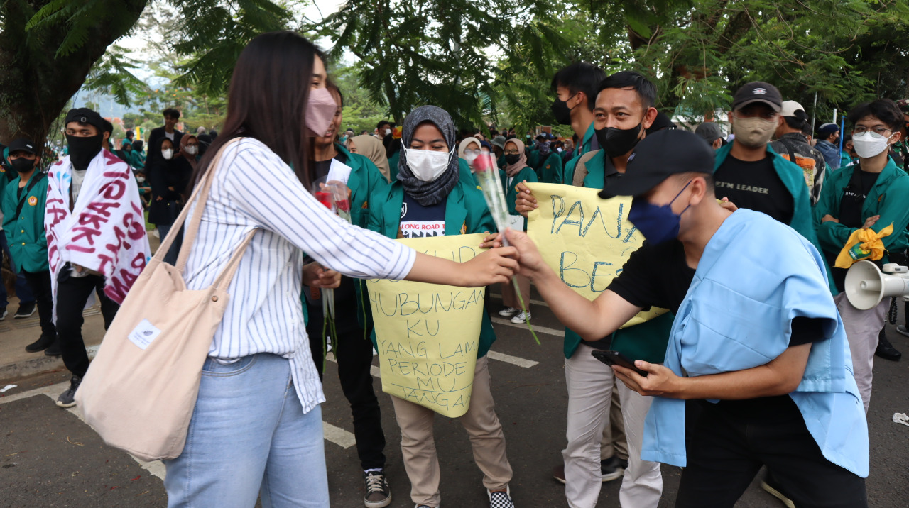 “Pada kesempatan ini juga kami menyediakan gerobak berkah serta pembagian sembako yang dibagikan oleh para Mahasiswa kepada para pedagang kaki lima yang berjualan di sekitar Alun-alun Sumedang sebagai bentuk kepedulian Mahasiwa kepada masyarakat kecil, lalu ada juga pemberian bunga dari perwakilan elemen masyarakat kepada para peserta Aksi sebagai bentuk dukungan kepada para Mahasiswa dalam menyuarakan aspirasinya.” Pungkas Eko