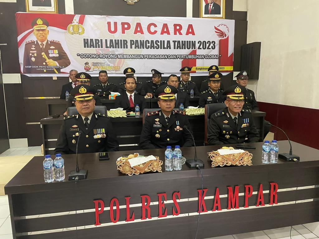 Polres Kampar Pusat menggelar Upacara Hari Lahir Pancasila 2023 secara virtual langsung dari Lapangan Monumen Nasional Jakarta yang di pimpin langsung oleh Presiden R.I. Joko Widodo, Kamis (01/06/2023).