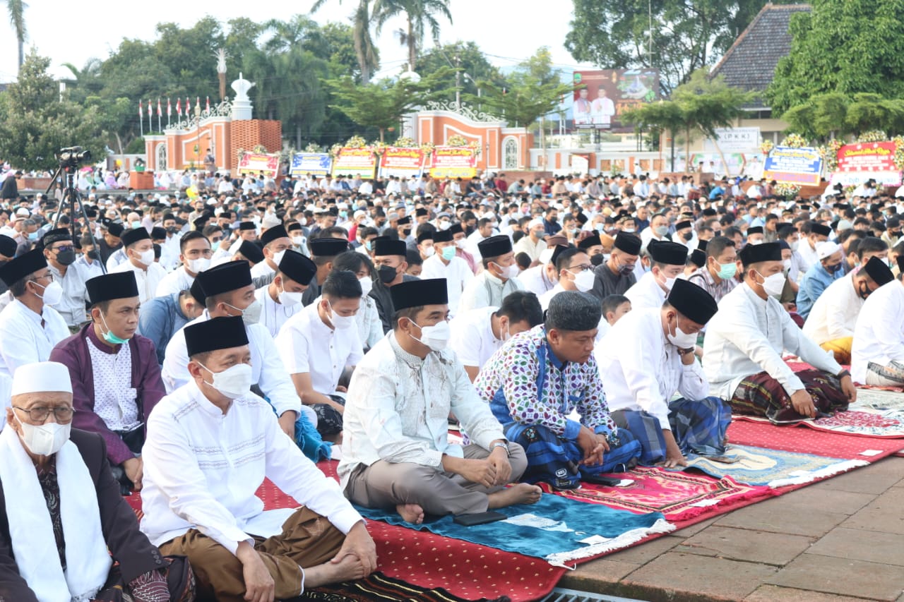 Turut Hadir dalam Sholat Idul Fitri 1443 H tersebut Bupati Majalengka H. Karna Sobahi, Wakil Bupati Majalengka Tarsono D Mardiana. Dihadiri Unsur Forkopimda Kabupaten Majalengka dan personel Polres Majalengka.