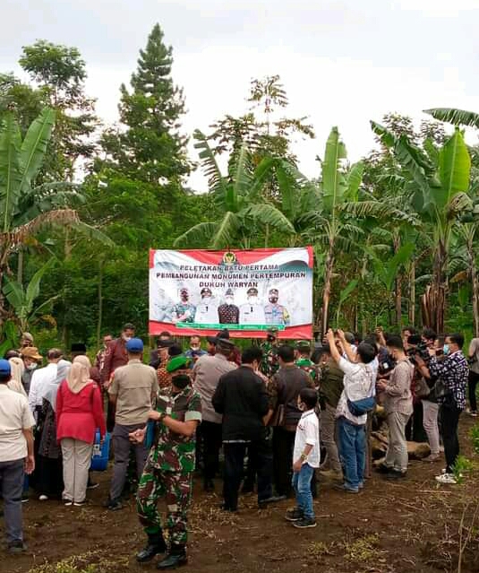 Pemalang – medialidikkrimsus-ri.net – Pembangunan Monumen Pertempuran di lapangan dukuh Waryan, Desa Karangsari, Kecamatan Pulosari, Kabupaten Pemalang secara resmi telah dimulai dengan ditandai peletakan batu pertama oleh Wakil Bupati Pemalang, Mansur Hidayat, S.T., pada Sabtu, (19/3/2022).