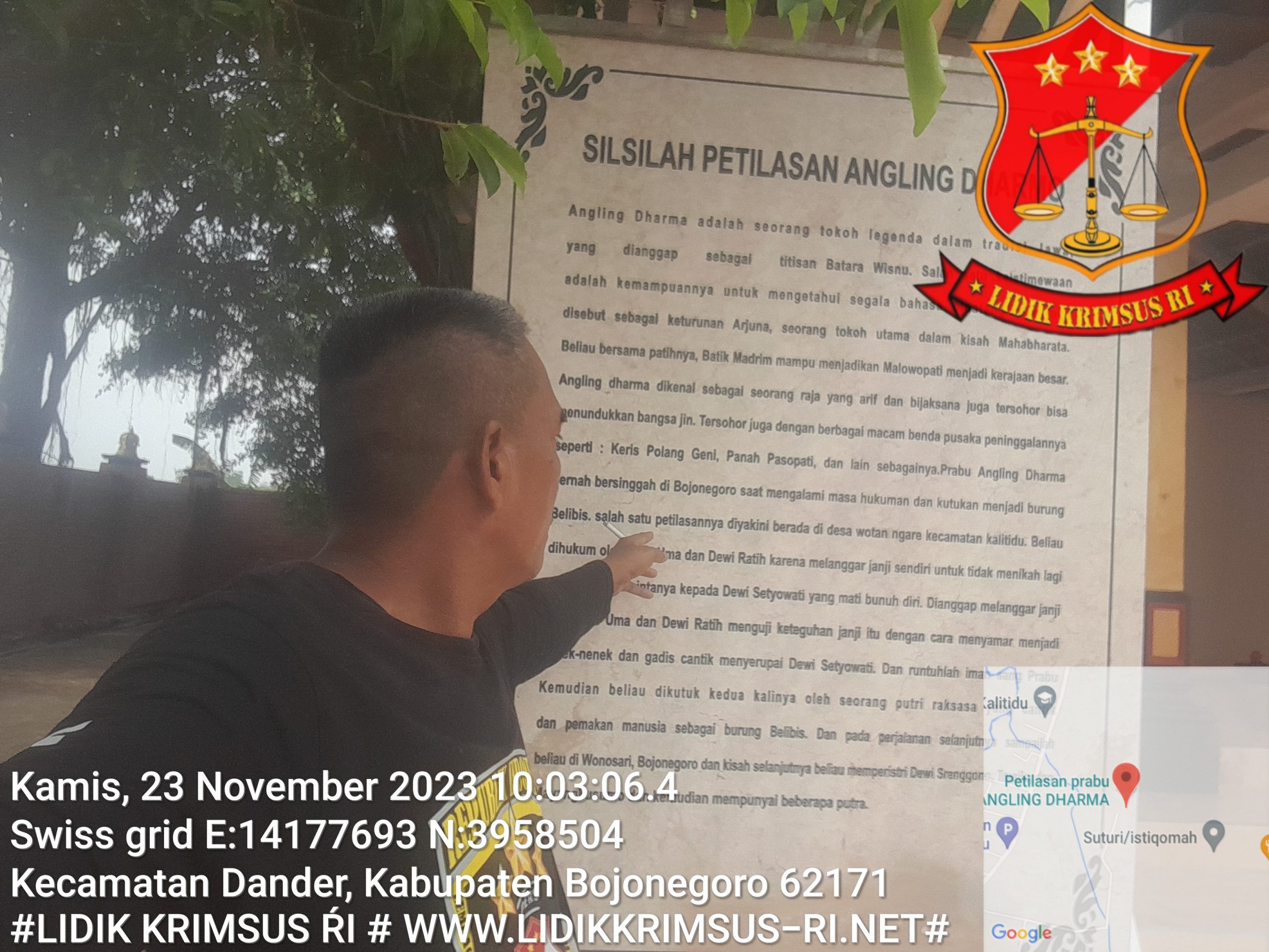 “Dengan demikian runtuhlah iman Sang Prabu, kemudian beliau di kutuk kedua kalinya oleh seorang putri raksasa yang cantik dan pemakan manusia sebagai burung Belibis, dan pada perjalanan selanjutnya sampailah beliau di Wonosari Bojonegoro, saat itu beliau memperistri Dewi Srenggono , Trusilo, dan Mayangkusumo, dan kemudian mempunyai beberapa putra, “pungkas Mbah Dul juru kunci kepada media lidikkrimsus-ri.net”.